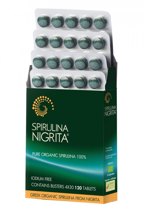 Supliment alimentar cu Spirulină organică din Nigrita fără iod. Este o cianobacterie din fitoplanctonul lacurilor alcaline, care, datorită compoziției sale unice, are o valoare nutrițională remarcabilă.
